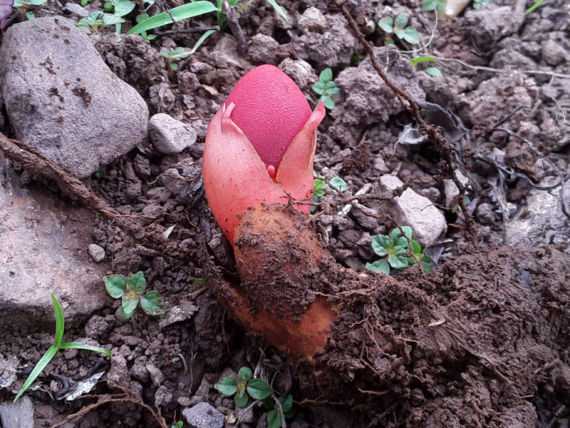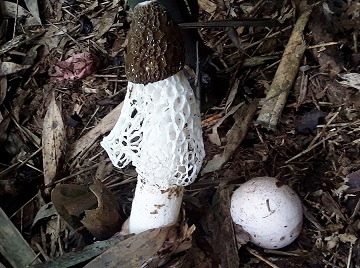 初期呈卵形,老熟后破裂伸出脆骨质菌柄或网柄。