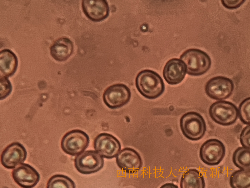 孢子无色,光滑,近卵圆形至椭圆形,稀近球形,6.2~8.3μm X 4.5~6.2μm。
