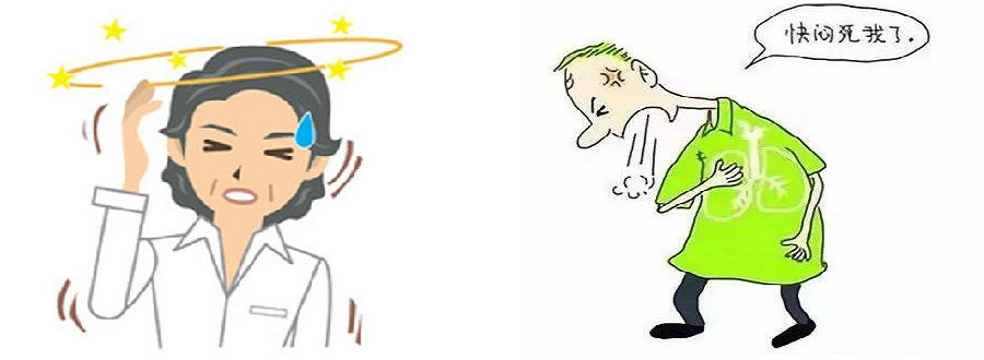 体感乏力、头晕、头痛、嗜睡。心跳加速,或者心率过缓。胸闷、呼吸急促、呼吸困难。