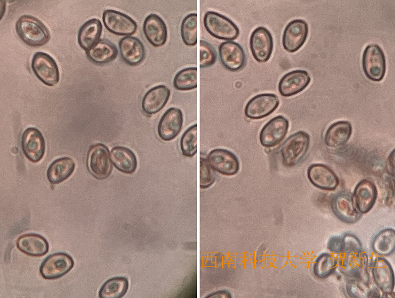 孢子淡紫褐色,光滑,椭圆形至卵圆形,6~9pmx4~5μm。
