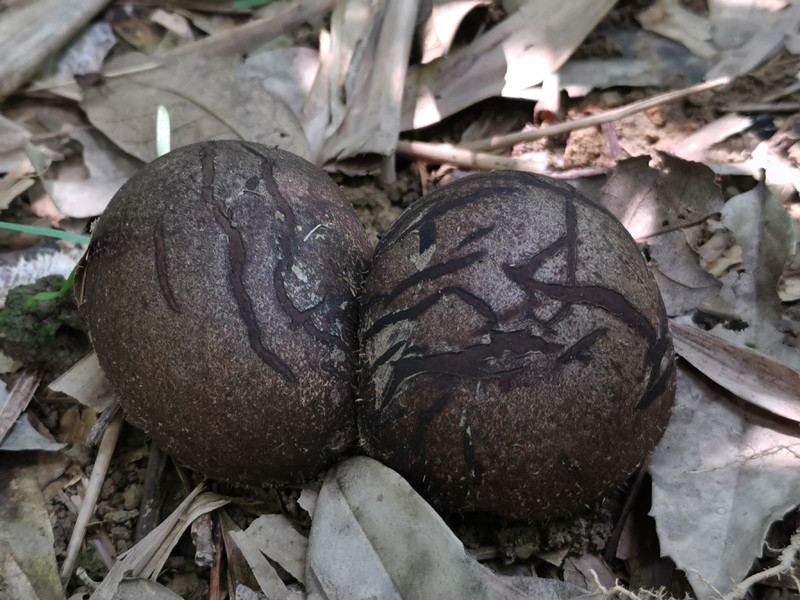 菌蛋呈球形或卵圆形,直径3~5cm。菌蛋初期白色,后颜色逐渐变深至深褐色。菌蛋基部菌索发达。表面遍布白色刺状突起组织,随着生长逐渐减少至表面光滑。伤不变色。