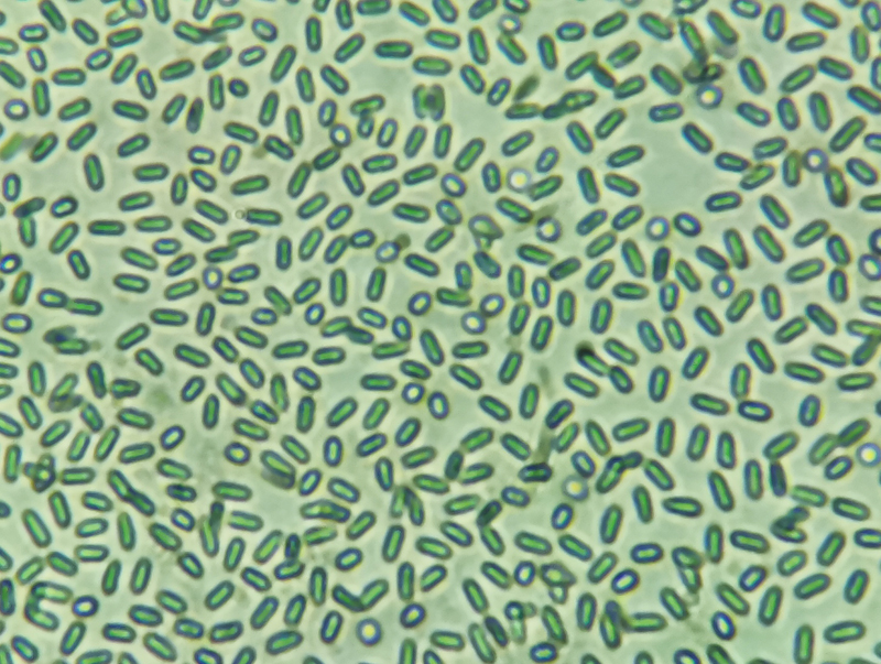 担孢子无色透明,呈椭圆形,3~4μm x 1.5~2μm。