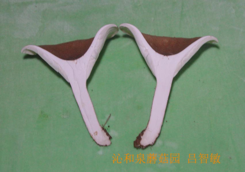 假根:连接地下基物,渐细。可长达20厘米。质地:肉质。 颜色:白色,伤不变色。