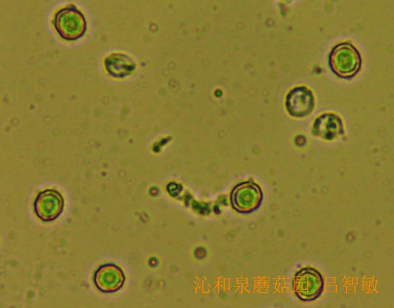 有性孢子形状:球形至近球形。 大小:(7.5~9)μm × (6~8)μm。 表面具分散性小疣,少数疣间相连。 颜色:无色。 化学反应:淀粉质