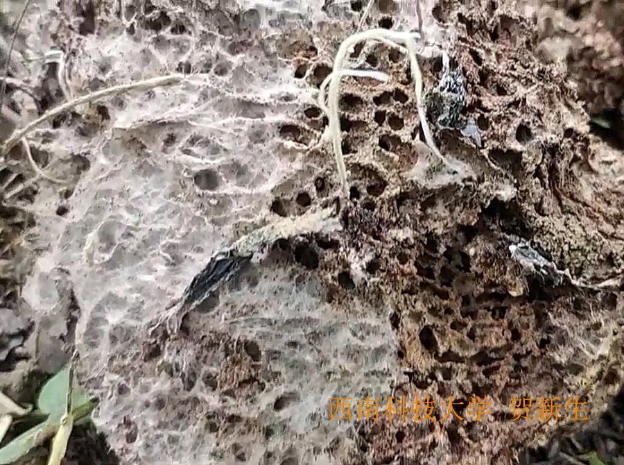 【生长环境】 废弃的白蚁巢上生长,并长出地面。